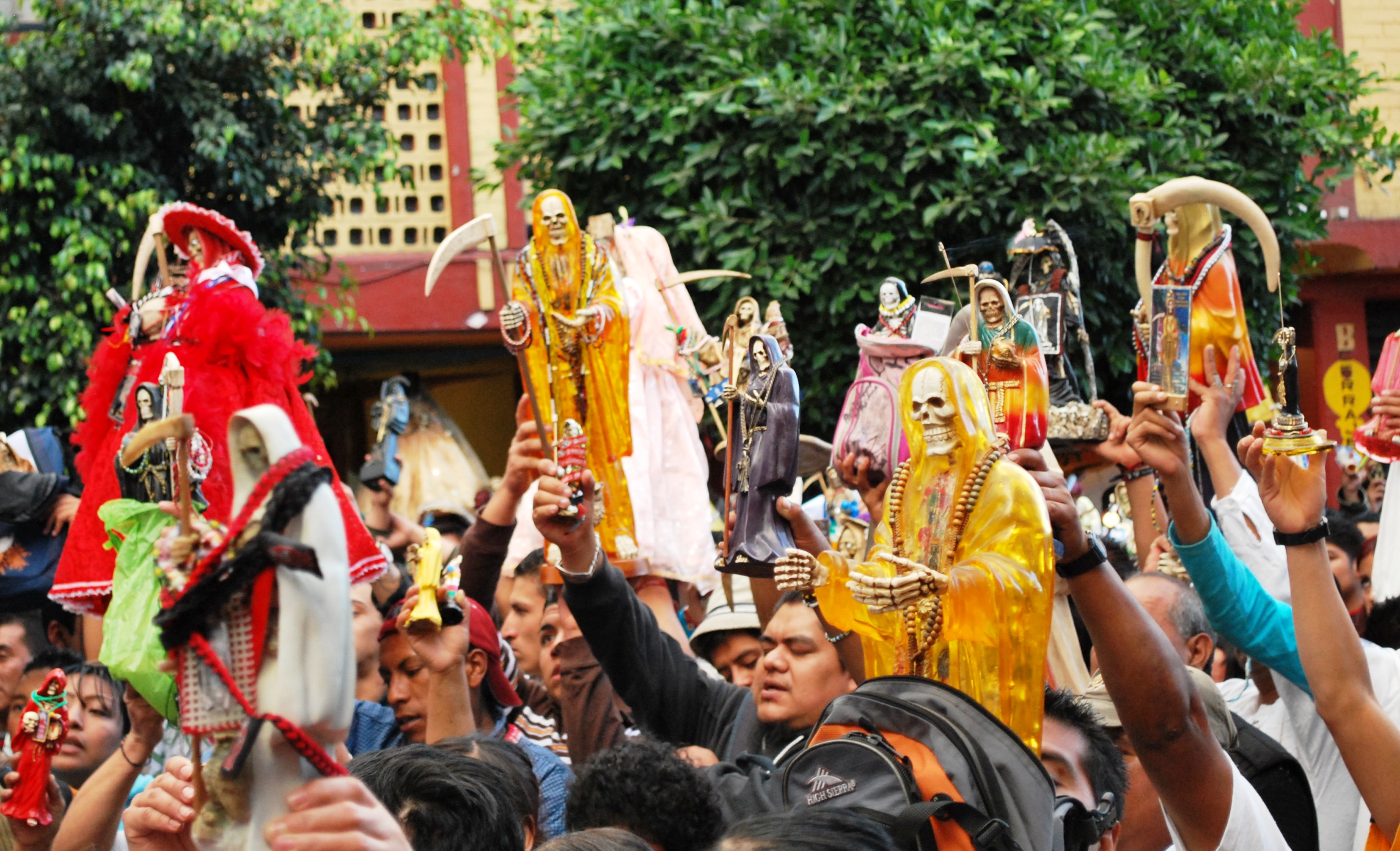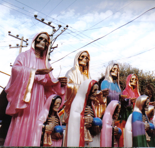 Desde que el fenómeno adquirió notoriedad en los espacios públicos y en los medios de comunicación, digamos el terrible huracán de la opinión pública, el culto a la Santa Muerte me había parecido rodeado por un halo discordante; como si fuera una rama retorcida del culto mariano con la tergiversación ultra-chira de la “Grimm Reaper”, la que cosecha las almas, como su objeto de veneración. Siniestramente abaratada su figura central y siniestros sus adeptos a los que habríamos de adscribir dentro de las generalizaciones más arbitrarias, como la tribu gigantesca de aquellos regidos por la supervivencia básica y la milagrería violenta. En fin, el culto de la Santa Muerte como la expresión religiosa/psi cotizada de un sector aplastado entre lo banal y lo precario, en concordancia con lo que algunos han venido a definir, al igual que los cultos a San Judas Tadeo y Jesús Malverde, “cultos de crisis”.