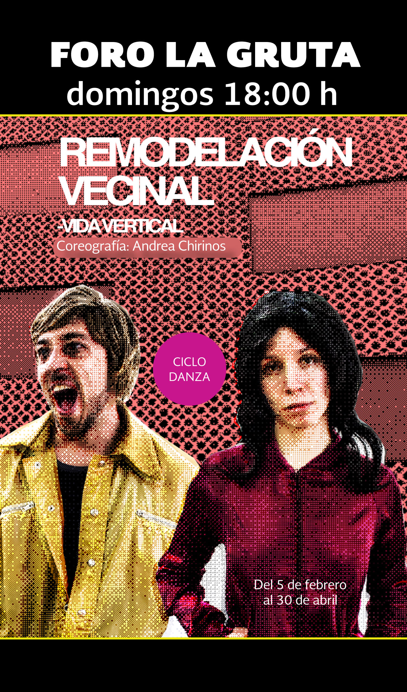 Tomando como punto de partida los multifamiliares, espacios donde surgen diferentes tipologías y se crean diversos lenguajes y formas de vestir como identificación personal; mostramos todos los aspectos que conforman a un individuo y cómo estos espacios hablan de la sociedad. A través de dinámicas corporales, video, gráficos, música, buscamos dar al espectador la idea del mundo como experiencia multicanal. Narrativas no lineales, lúdica y no por ello menos emocionales.