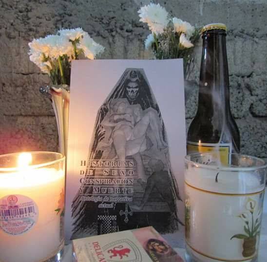 Si me atrevo a afirmar todo esto, es por aquello que el destino tendría para mí señalado; porque en lo que a mí respecta desde que supe que participaría hasta la culminación de esta antología, mi realidad inmediata estuvo rodeada de enfermedades, hospitales, agonías, largas agonías y muertes. Debo decir que la fotografía que parece al interior, no tuve otra opción, ahora entiendo que no podía ser de otro modo, me la tomaron a un lado de una iglesia en la que estaban velando a la mamá de mi papá. Para ese momento ni siquiera sabía que la antología llevaría por nombre Historias de sexo, conspiración y muerte.