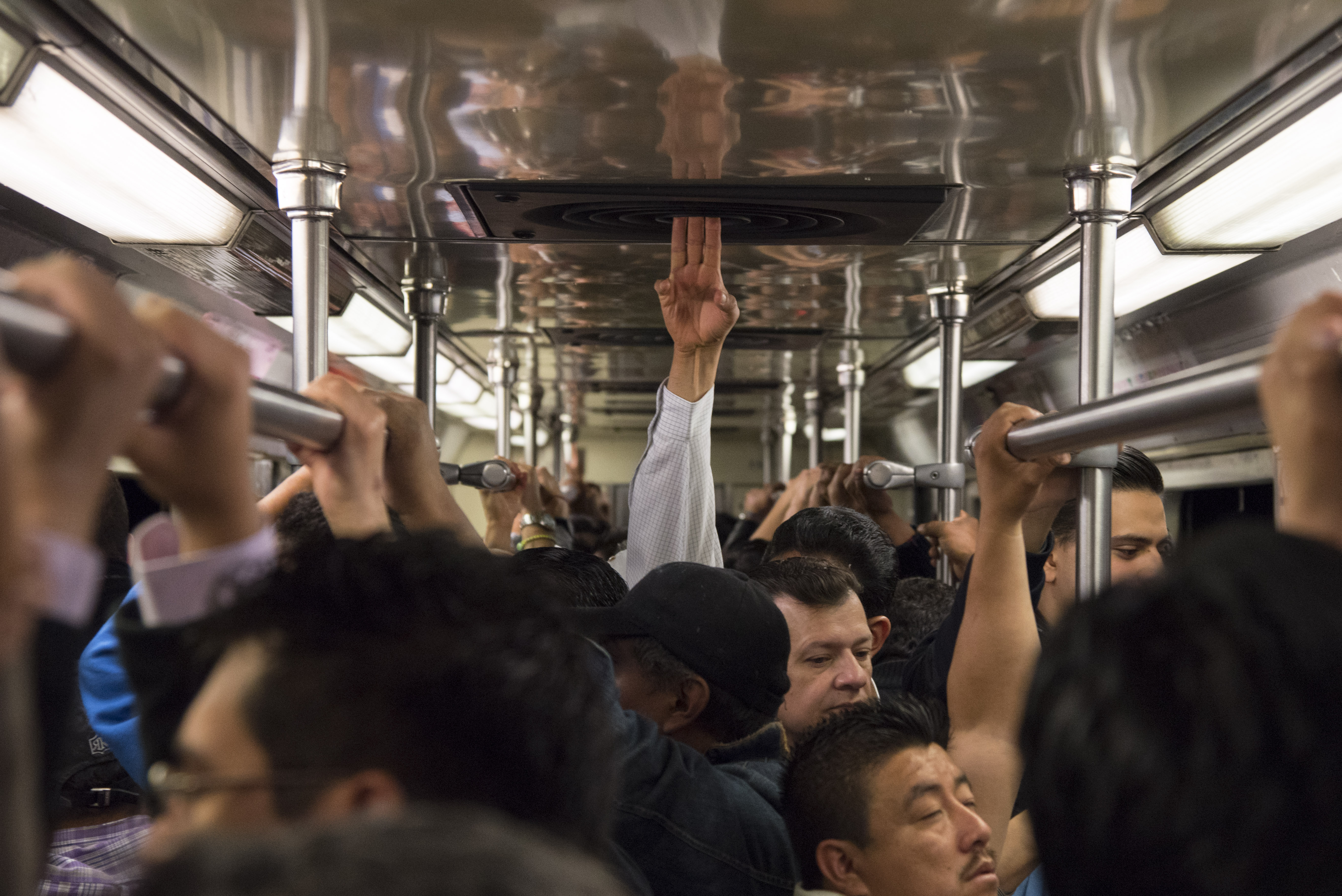 —Oh, me parece una excelente idea. Seguir a la multitud es una conducta bastante común. Podría decirse que esa actitud es propia de la especie humana, ya que en la inercia actúan dos fuerzas cósmicas: la pereza y el delirio. La primera, también conocida como “ley del menor esfuerzo”, hace que los hombres se comuniquen de una forma no verbal, con lo cual, un mensaje urgente se disperse por las mentes y las alerte del peligro. La segunda, por su parte, es el alma de todos los actos voluntarios del hombre: inflama cualquier deseo al grado de obsesión y aviva las pesadillas cotidianas. Entonces, ¿realmente es malo seguir a esta mixtura que viaja en el vagón? Yo creo que no. Aunque no hubiese planeado bajar en determinada estación o le impidan bajarse, el lugar a donde lo lleve la masa será el correcto. Incluso el propio viaje es el destino. Tan impredecibles son los designios del Señor. Así que, joven, me parece que tendrá un buen día pese a los empujones.