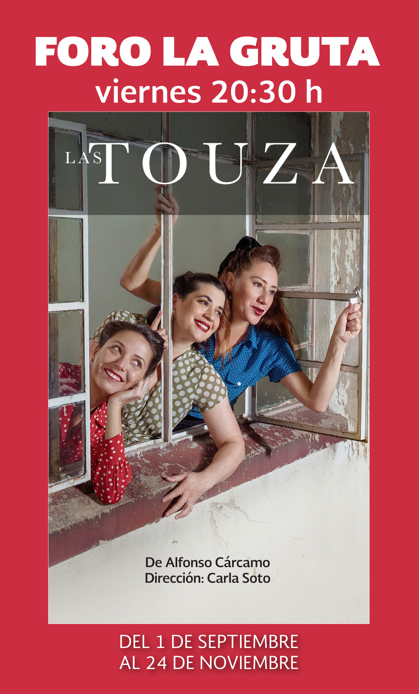 Funciones: viernes a las 20:30 horas, sábados a las 18:00 y 20:30 horas y domingos a las 17:00 y 19:30 horas