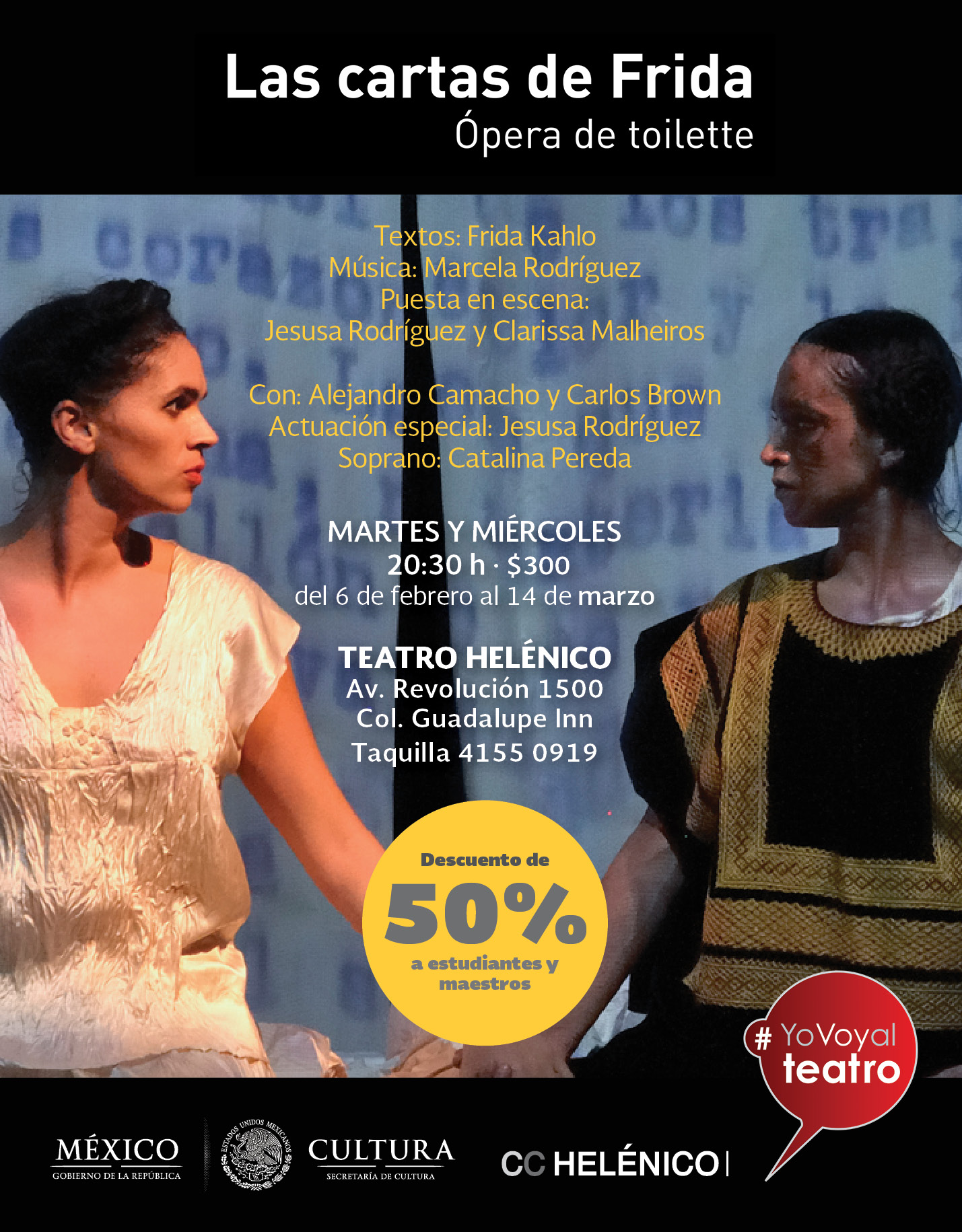 Las cartas de Frida fueron descubiertas en el baño de la Casa Azul en Coyoacán, que fue su hogar desde la infancia. Un tesoro para Marcela, quien realizó la adaptación para la puesta en escena con una soprano, Catalina Pereda, y su alter ego, la actriz Jesusa Rodríguez. La obra también cuenta con la participación de los actores Alejandro Camacho M. y Carlos Brown, quienes interpretan a los personajes oníricos que Frida evoca mientras escribe sus cartas.