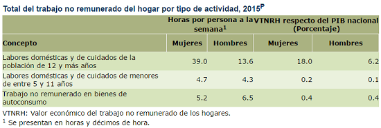 Valor económico de las labores domésticas y de cuidados no remunerados.
