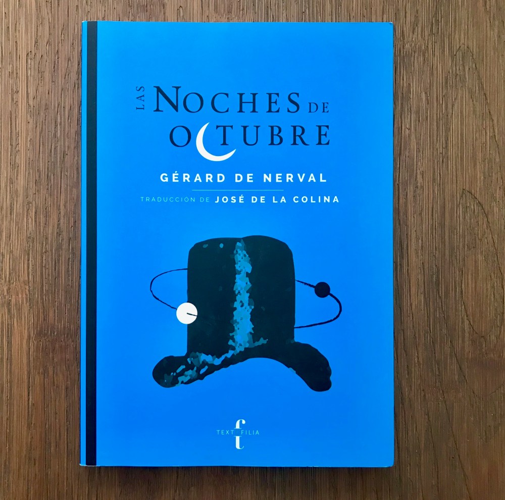 Las noches de octubre (Textofilia 2017, colección Ultramarinos), de Gérard de Nerval, es un clásico de la literatura francesa que vuelve a nosotros gracias a la traducción de José de la Colina, que resulta muy clara y precisa.