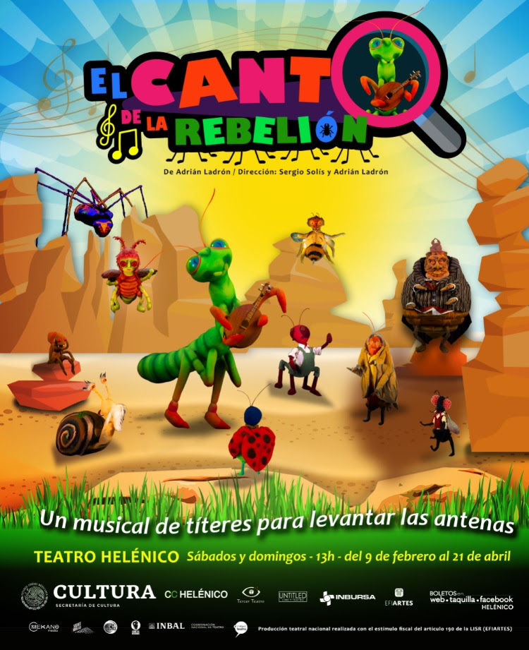 Adrián Ladrón, en alianza con Tercer Teatro y Untitled Films, presenta un El canto de la rebelión, cuyo slogan advierte al espectador: “un musical de títeres para levantar las antenas”. Durante poco más de hora y media, el público de todas las edades tendrá la oportunidad de adentrarse en un universo no tan distante de la realidad: la lucha de la sociedad por su libertad, por sus ideales.