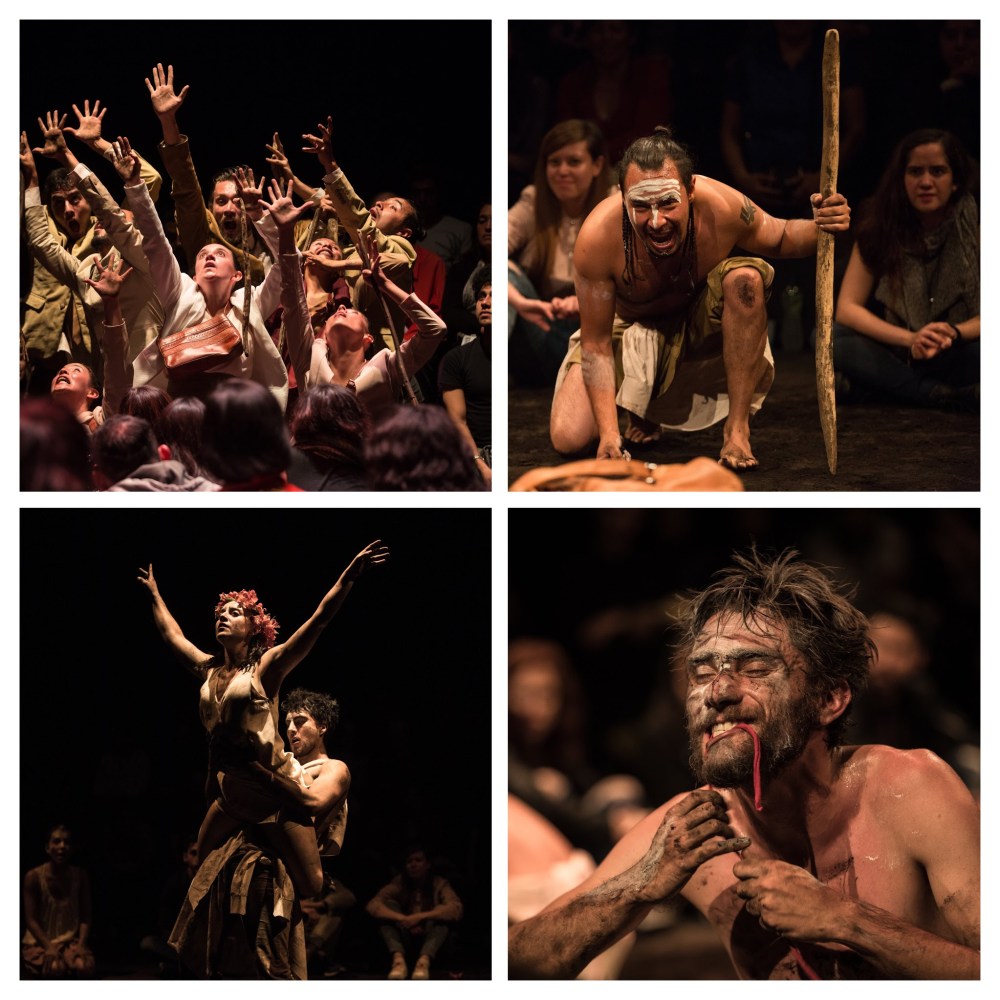 Esta suerte de ejercicio antropológico contemporáneo se desenvuelve a través de un ejercicio coreográfico a ritmo de música tribal, un lenguaje creado exclusivamente para la obra; elementos que, a la par de la excelente labor de María Vergara en la iluminación —quizá el factor que más logra destacar los claroscuros y el sanguinario padecer de la trama— tratan de sostener una historia que bien podría haberse desenvuelto mejor en un thriller político o en la ciencia ficción. La ambición de El coro es tal que, al observar cada ejercicio experimental, va desnudando sus costuras y poco a poco muestra su evidente evocación a El señor de las moscas de Golding y otras historias del mismo corte. Conforme pasa el tiempo, el espectáculo desfallece, los clichés abundan (el ya mencionado cetro) y la redundancia se fortalecen aún más que los guerreros que se disputan el honor de asumirse líderes, donde se sabe de antemano que el constante latido del corazón terminará en infarto. No así el espectador, quien saldrá ileso de semejante festín y se preguntará si la nota discordante en el coro no es acaso la monotonía ¿O será necesaria la presencia de todo el público sobre el escenario y así comprobar si es efectiva la propuesta de Romanni Villicaña y Ariana Candela (directores escénicos)?