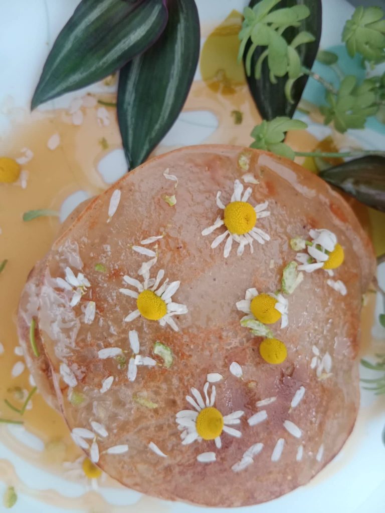 La clave no está en las crepas, sino en el jarabe. Previamente bien lavaditas se ponen a cocinar las flores de manzanilla con agua hasta cubrirlas completamente. Se agrega azúcar y piel de limón. Se dejan hervir, cuidando que no se quemen, hasta que el agua tenga consistencia de miel… Aspiro el aire perfumado y en mi olfato se dibuja el albor de mi niñez.